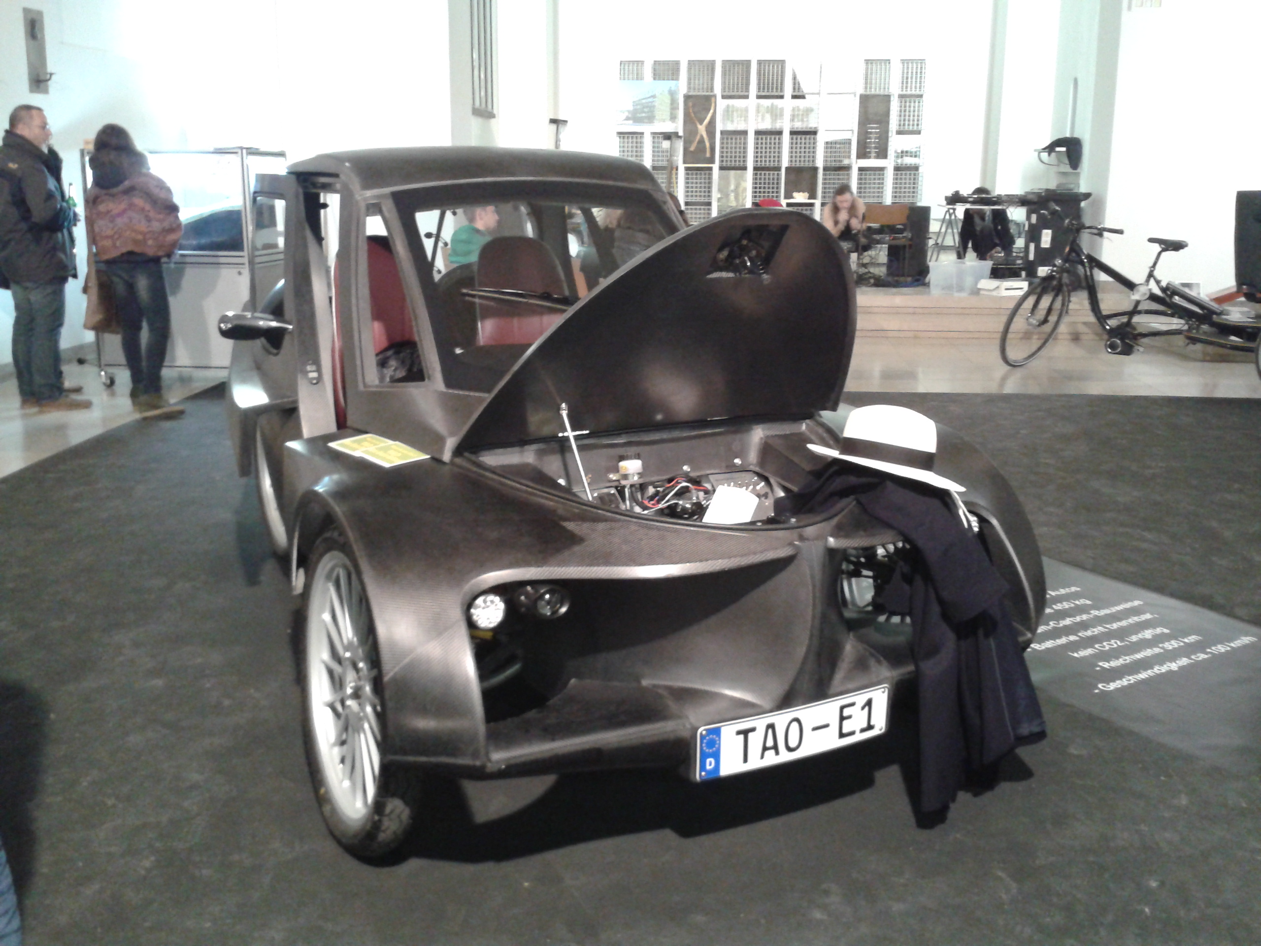 Erstmals stellte das TAO Forschungsteam unter der Leitung von Prof. Dr. Bernd Kröplin den TAO SPACE CAR vor, der aus einer Carbon-Aluminium-Karosserie besteht und mit einer neuartigen Zink-Luft-Batterie betrieben wird.