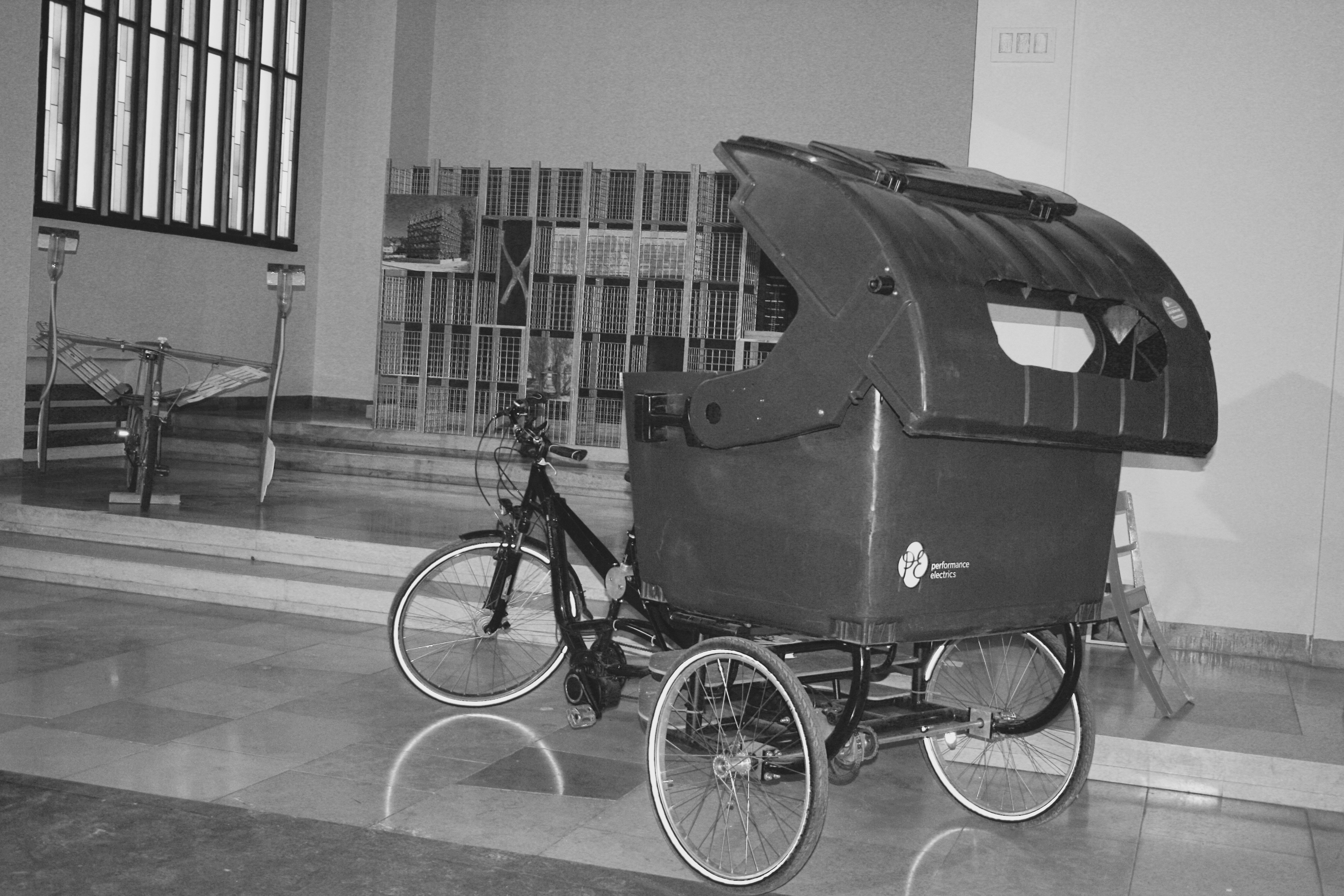 Einen weiteren Beitrag zu alternativer Mobiliät und Stromgewinnung präsentiert PERFORMANCE ELECTRICS mit der elektrischen Rikscha, die fast vollständig aus upcyceltem Material (z.B. Mülltonnen) geschaffen wurde.