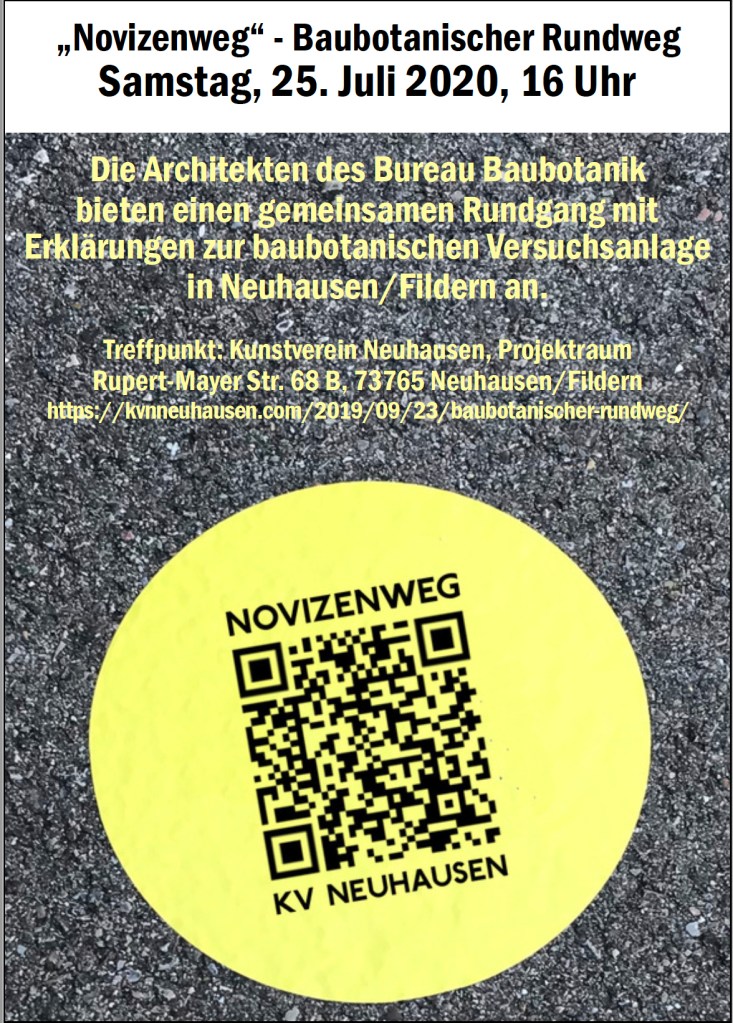 Im Jahr 2019 entstand in Neuhausen/Fildern der erste baubotanische Rundweg in Baden-Württemberg. Das Langzeitprojekt „Novizenweg“ (2019-2029), benannt nach dem bereits existierenden Strassenabschnitt, wird von einer wissenschaftlichen Untersuchung des Bureau Baubotanik aus Stuttgart, in Zusammenarbeit mit dem KV NEUHAUSEN, begleitet.