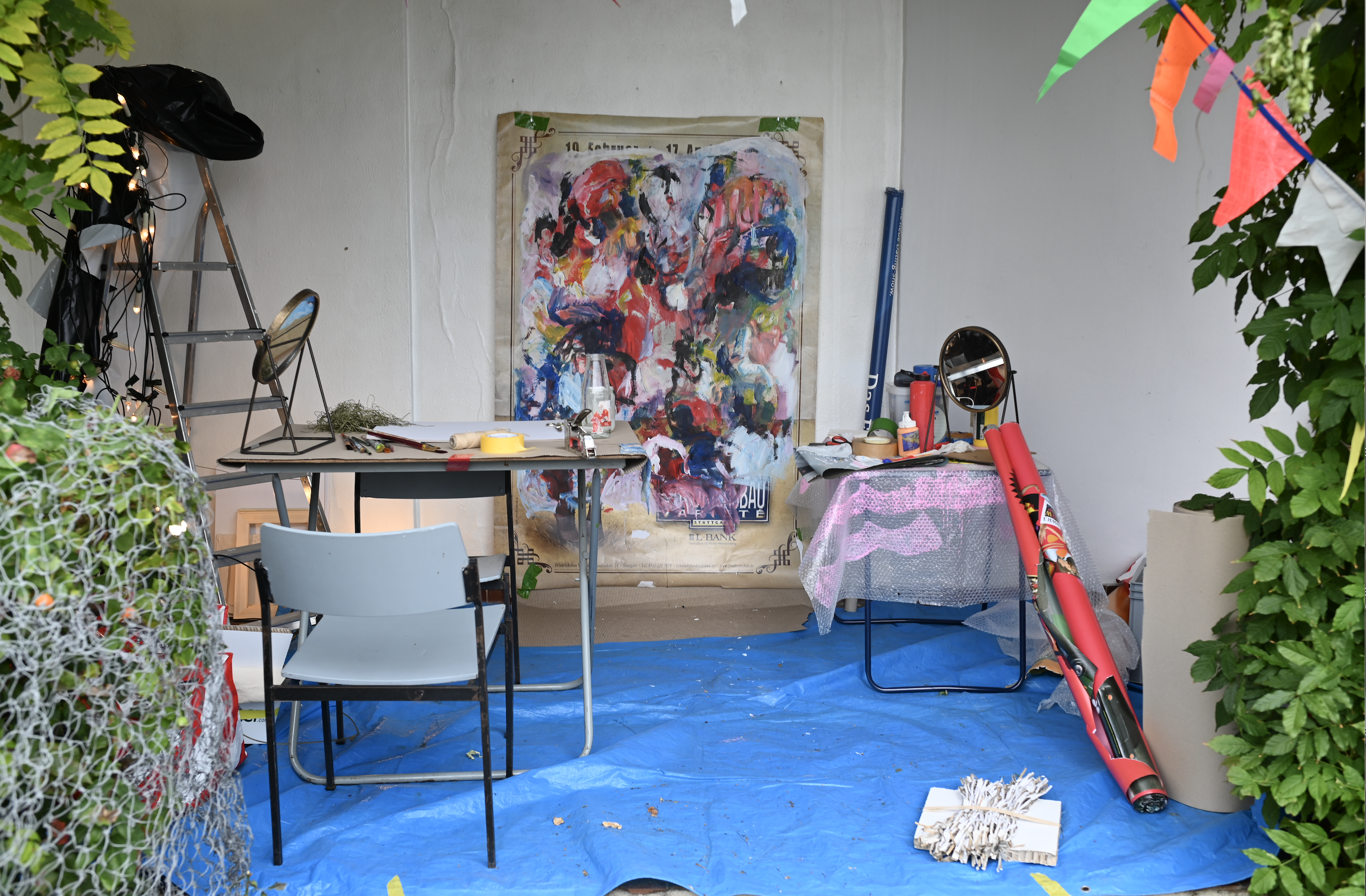 FUKS lädt am Wahlsonntag Besucherinnen und Nachbarinnen des KV NEUHAUSEN herzlich dazu ein, in einer 1:1 Situationen mit jeweils einer der drei Künstlerinnen ein Kunstwerk zu entwickeln. FUKS bietet eine Fülle an Materialien, aus denen Sie u.a. Gemälde, Zeichnungen, Skulpturen, Textilarbeiten, Collagen erstellen können. Die entstandenen Arbeiten werden fotografisch und filmisch dokumentiert. Im Anschluss erhalten die an der Aktion Beteiligten das gemeinsam gefertigte Artefakt als Geschenk.