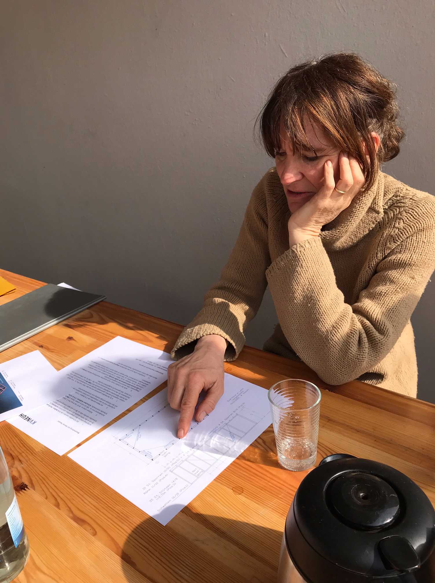 Mit diesen Baustoffen will die Künstlerin im Projektraum ein Eins-zu-Eins Modell erstellen, das den Grundriss eines der Arbeiterhäuser des niederländischen Architekten J.J.P OUD in der Weißenhof-Siedlung in Stuttgart nachzeichnet. Die zierlichen Reihenhäuser wurden im Jahr 1927 zur Internationalen Bauausstellung in Stuttgart erstellt. Fast hundert Jahre später projiziert Folke Köbberling, die auch als Kuratoriumsmitglied der IBA 2027/StadtRegion Stuttgart tätig ist, den Grundriss eines Oud-Gebäudes in den Projektraum des Kunstvereins und aktualisiert den Blick auf die damals in Gussbeton erbaute funktionalistische Wohnanlage, indem sie die Bauweise und die Materialfrage einer nachhaltigen Neuinterpretation unterzieht.