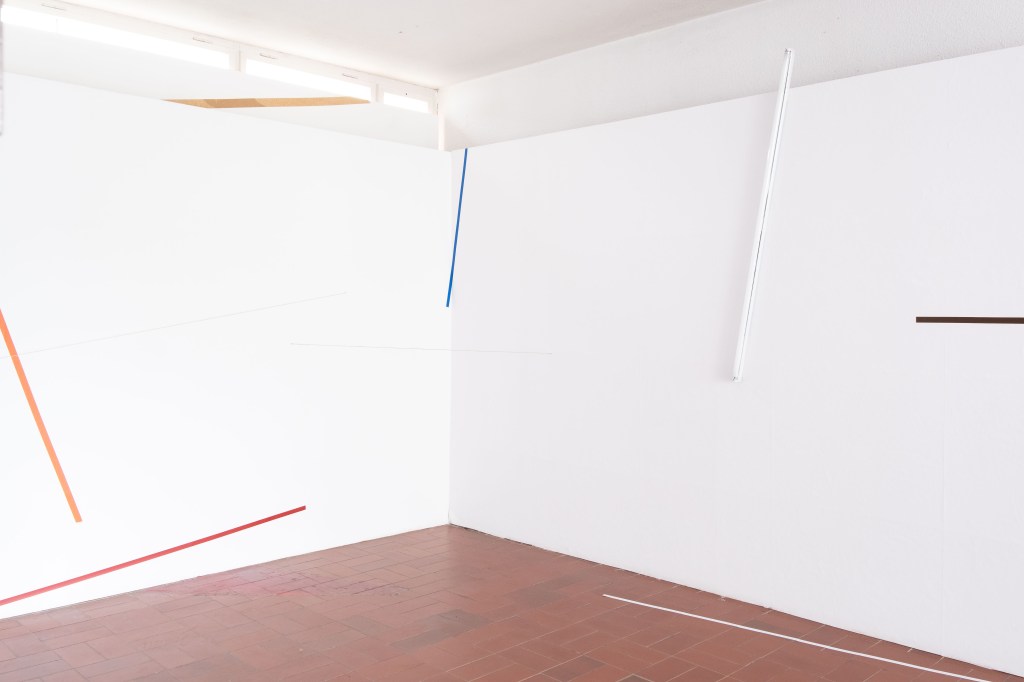 Der in Berlin lebende Künstler Andreas Schmid behandelt bestehende Räume als Orte des Übergangs zwischen Außen und Innen. Häufig sind es gemalte Linien, farbige Bänder, Tapes, Seile oder Lichtleisten, mit denen er die Funktion, Richtung und performative Qualität eines Raumes sichtbar macht. Andreas Schmid plant für den Kunstverein Neuhausen eine Art Raumverspannung, mit der er den Außenraum mit dem Projektraum verbindet und dabei neue Wegeführungen und Raumerfahrungen anbietet.
