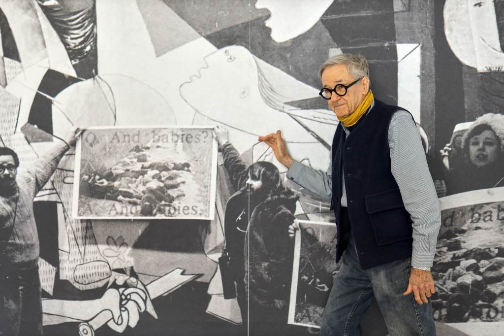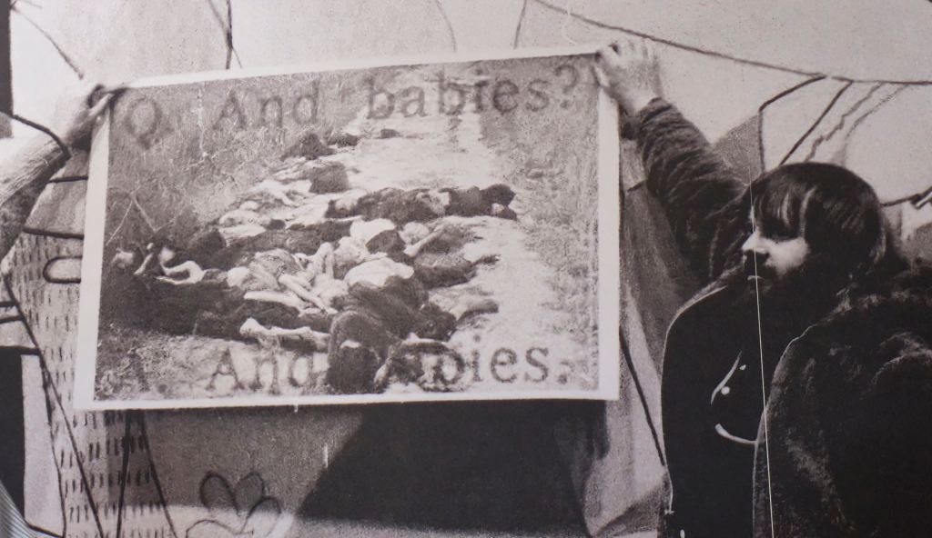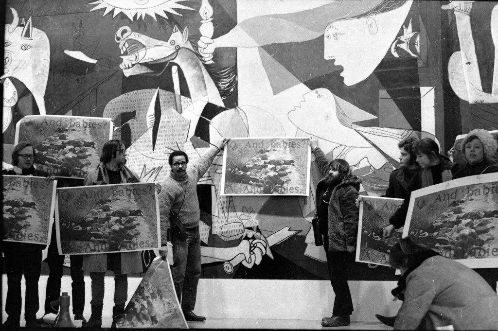 Guerrilla Art Action Group & Art Workers Coalition, And the Babies? Gemeinsame Protestaktion vor Pablo Picassos Wandbild „Guernica“ anlässlich des My Lai Massakers (1968), Museum of Modern Art , 8. Januar, 1970, Foto © Jan van Raay