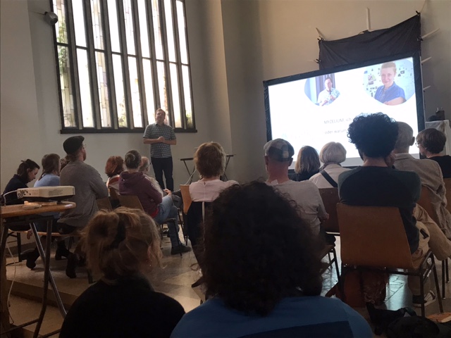Der Gründer von MYZELIUM, Timo Wans stellt in seinem Impulsvortrag die Inhalte und Ziele des 2018 gegründeten Wirtschaftsnetzwerks vor. Im Mittelpunkt steht die Frage, wie Ansätze des gemeinschaftsbasierten Wirtschaftens auch auf den Kunstbereich übertragen werden können. MYZELIUM überträgt dabei die Prinzipien der solidarischen Landwirtschaft auf andere Wirtschafts- und Gesellschaftsbereiche und entwickelt bedürfnisorientierte Angebote für Dorfläden, Coworking Spaces bis hin zu Orchestern.