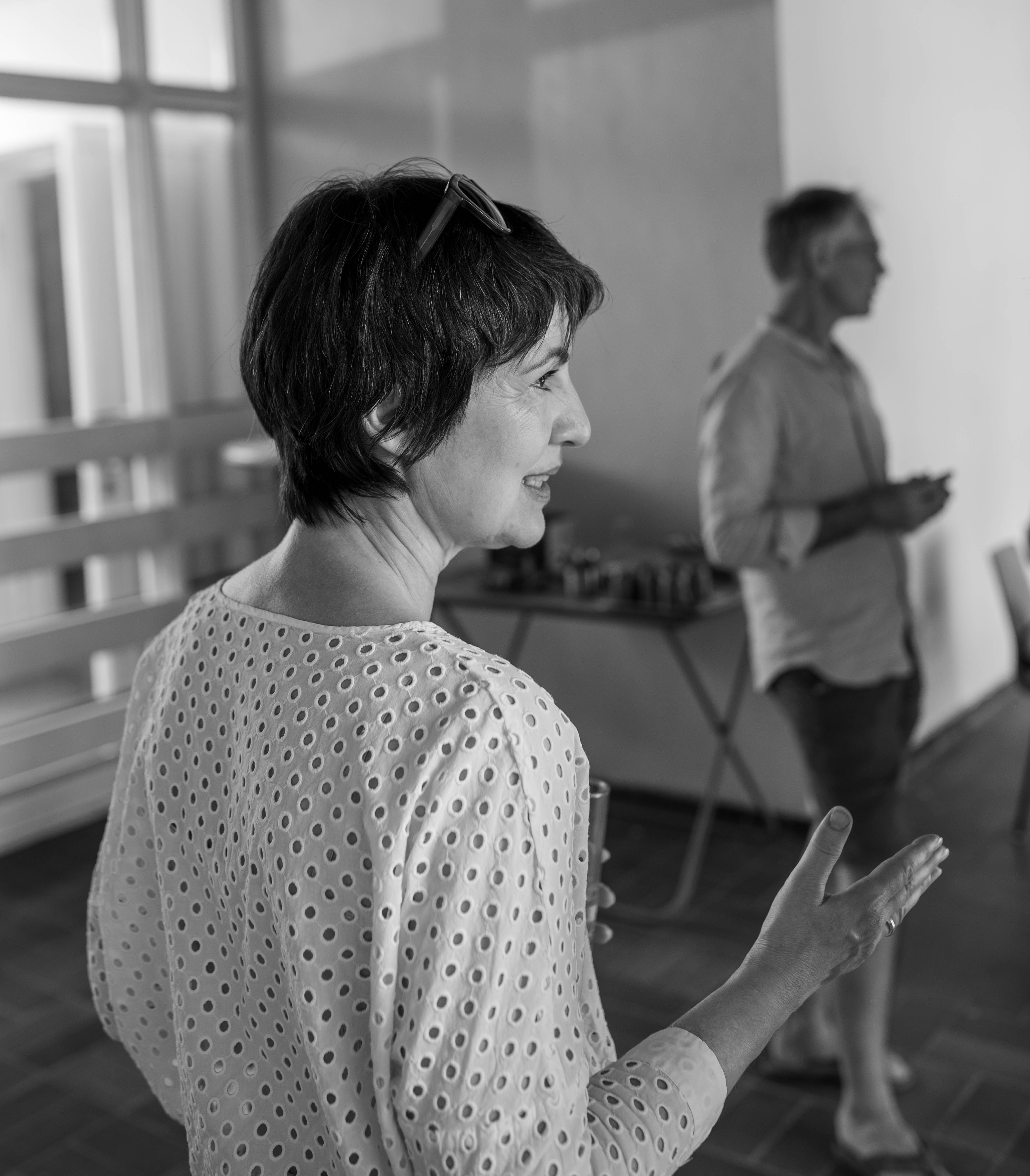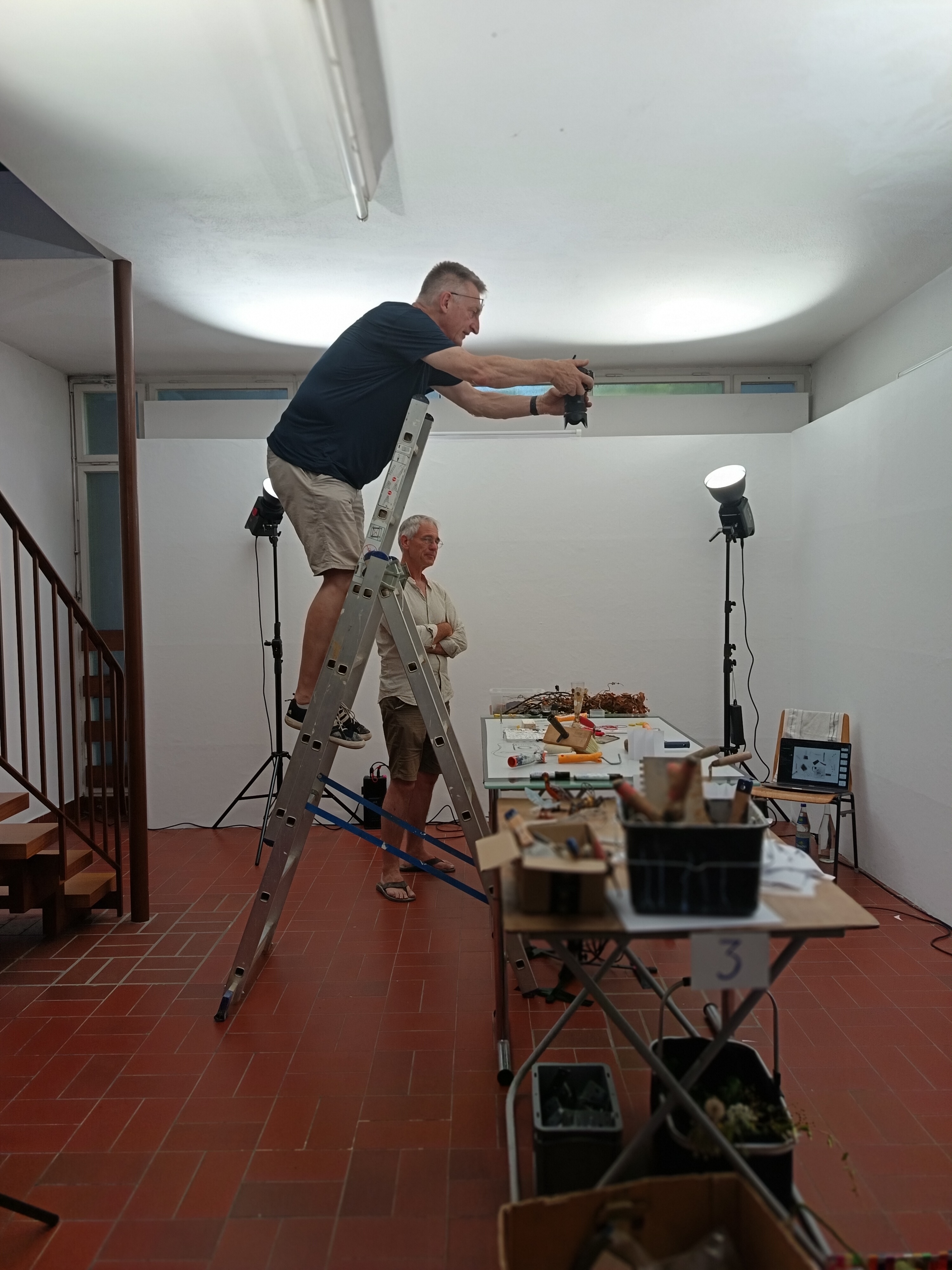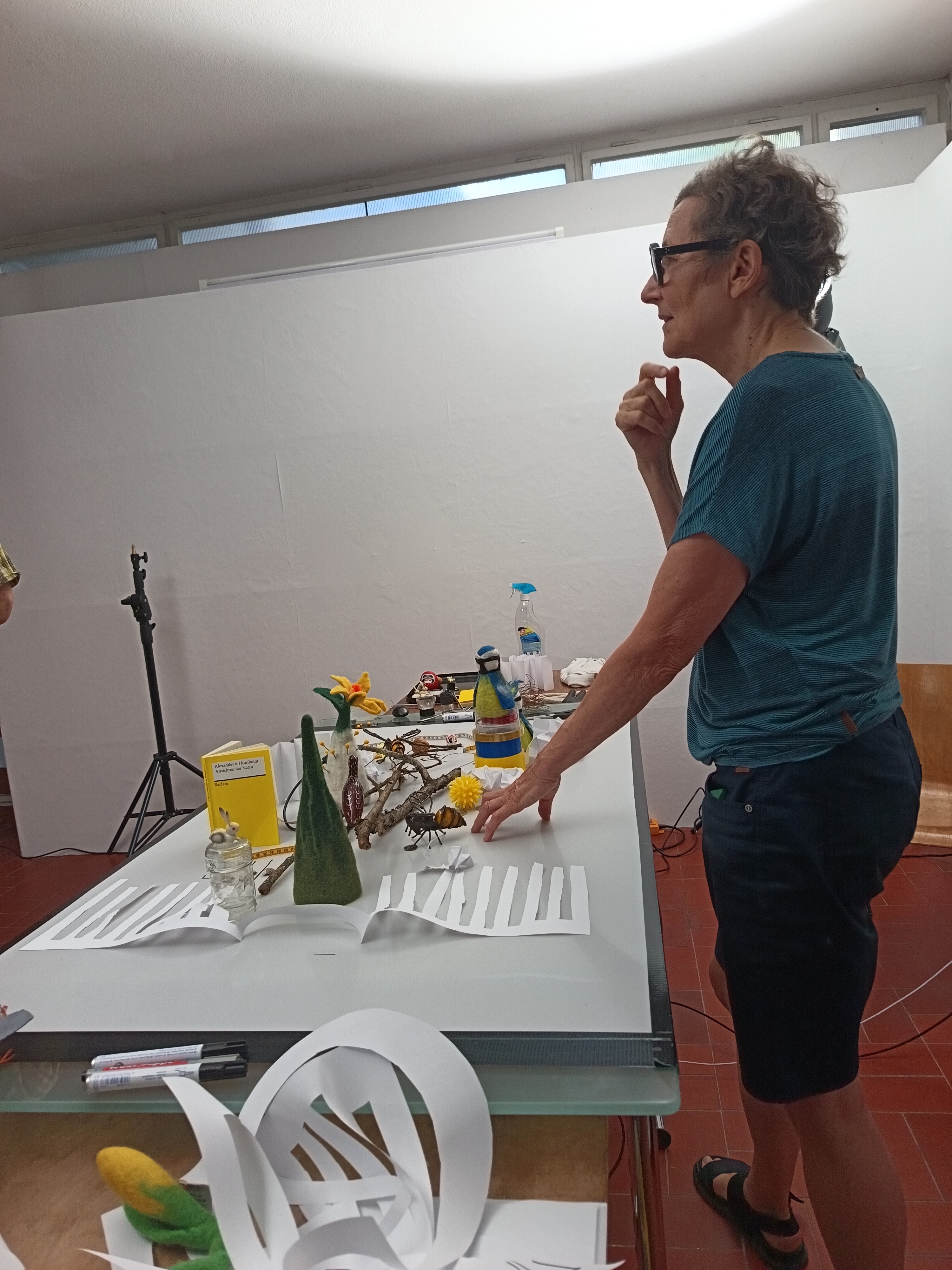 - Speed Dating mit Sinje Dillenkofer (28.6.) und Valentin Wormbs (29.6.) Dialog-Angebot: Inszenieren eines Fotoshootings mit Objekten Innerhalb von fünfzehn Minuten gestalten zehn Teilnehmer:innen jeweils ein Tableau auf einer großen Milchglasscheibe. Das finale Arrangement wird von oben und von unten fotografiert. Die beiden Aufnahmen werden später von den Künstler*innen zur Deckung gebracht und digital so bearbeitet, dass mit wechselnder Transparenz unterschiedliche Ansichten und Durchsichten auf die Objekte und deren Schatten möglich werden. Die zehn entstandenen Bilder können als manifestierte Gedächtnisspur zu den zehn Dialogen verstanden werden und lassen sich formal abstrakt, räumlich, gegenständlich oder mit metaphorischen Anspielungen lesen.