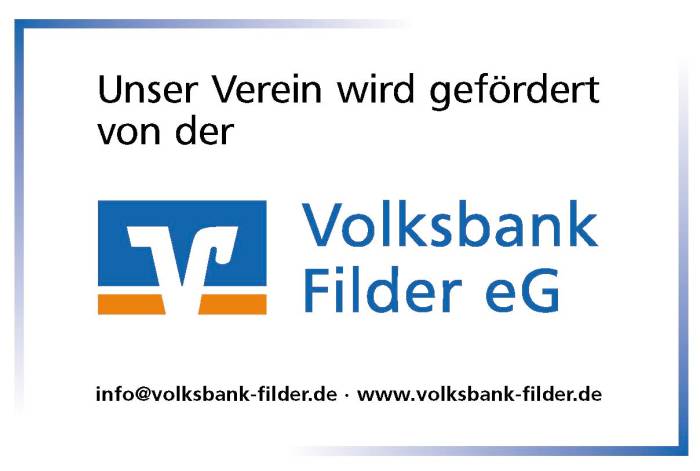 Unser Verein wird zum Jubiläum finanziell von der Volksbank Filder eG gefördert.